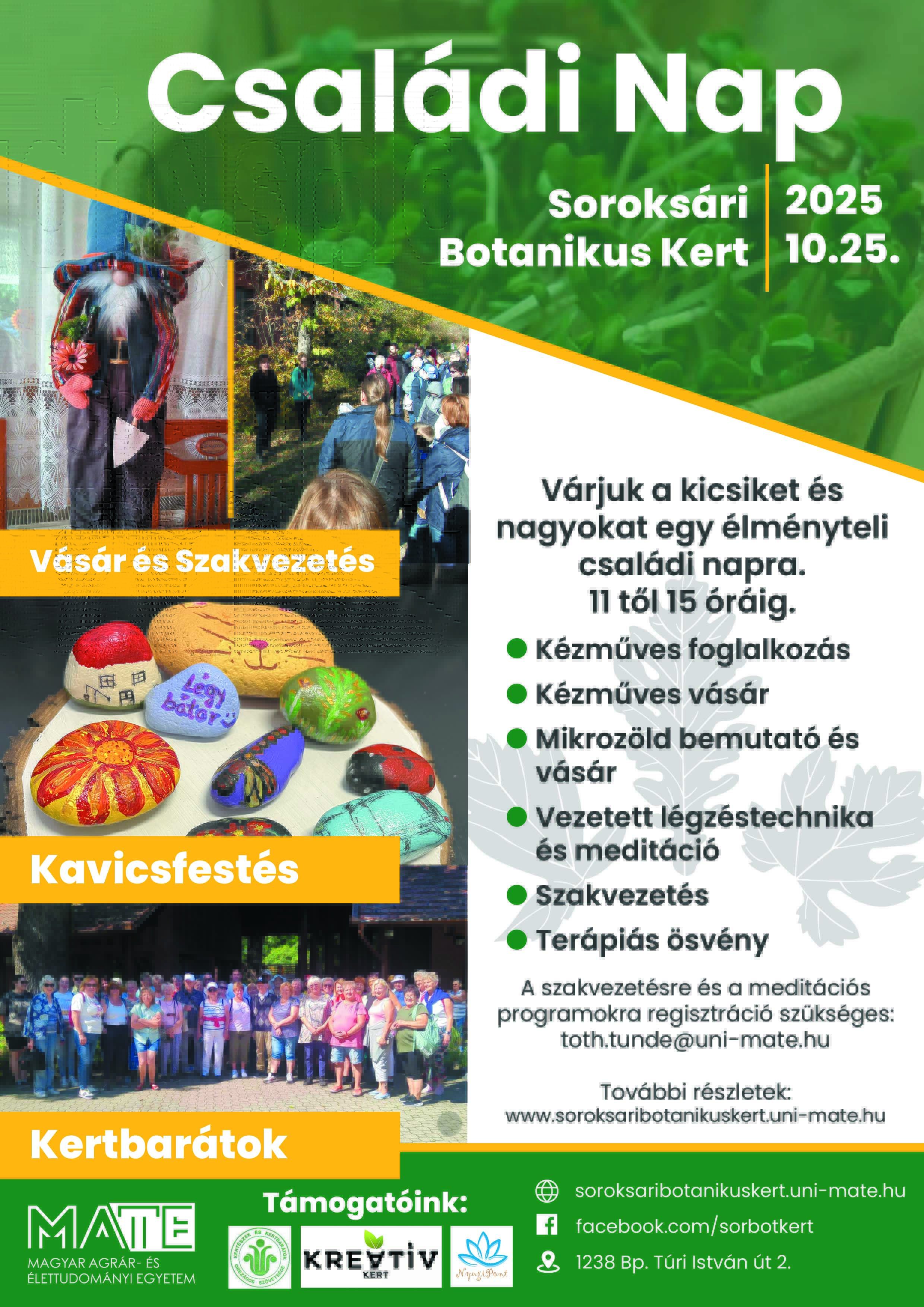 Várjuk Önöket a lombszínezős és élménydús kreatív családi napunkra 2025. október 25-én szombaton 11 és 15 óra között, melyen az alábbi programokban vehetnek részt.