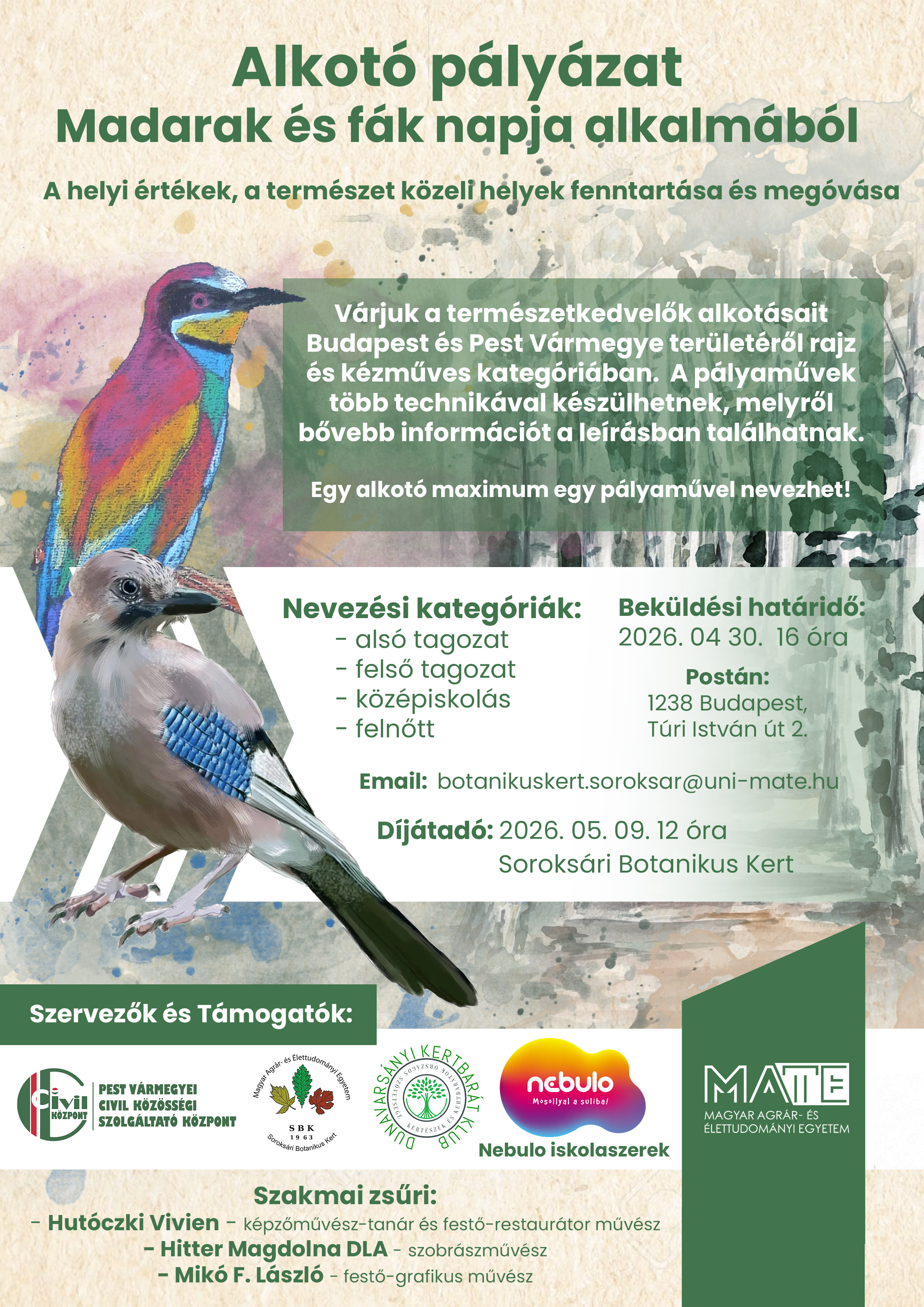 Az alkotások, személyesen leadhatóak a Soroksári Botanikus Kert főépületénél nyitva tartási időben vagy postán, valamint elektronikusan is elküldhető.