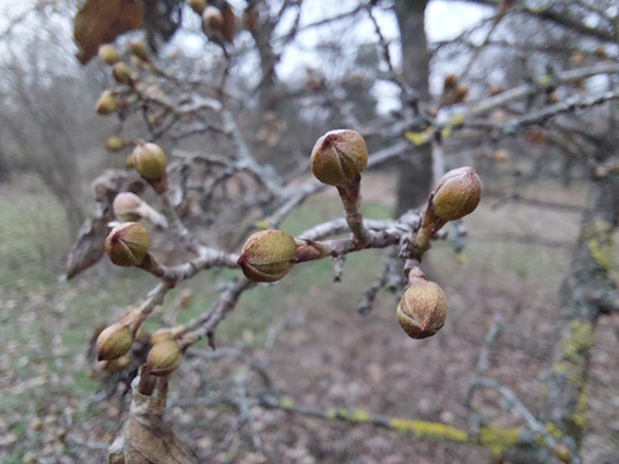 Bors méretű gömbölyű virágzati rügyeket 4 barnás rügypikkely veszi körül és a törpehajtásokon ülnek.